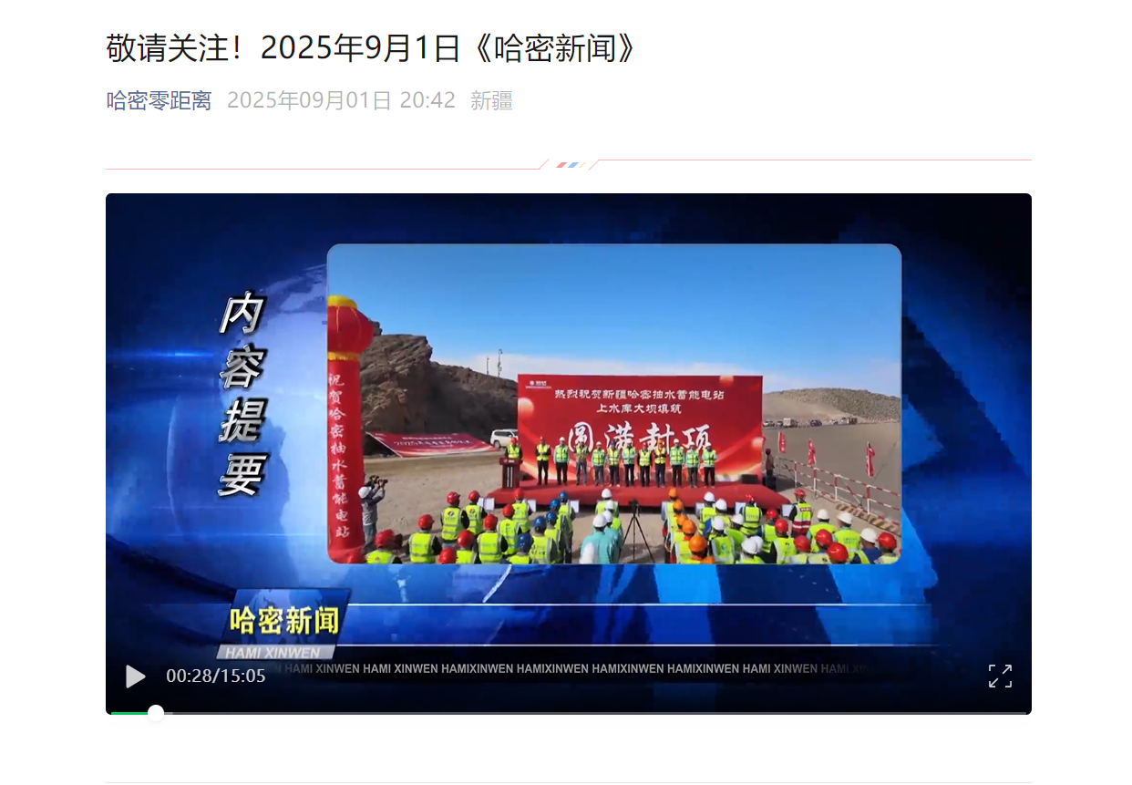 9月1日,哈密新聞聯(lián)播對水電一局承建的新疆哈密抽水蓄能電站上水庫大壩填筑圓滿封頂進(jìn)行了專題報(bào)道。 8月30日,由水電一局承建的新疆哈密抽水蓄能電站上水庫大壩填筑圓滿封頂,按期實(shí)現(xiàn)上水庫建設(shè)關(guān)鍵節(jié)點(diǎn)目標(biāo),標(biāo)志著項(xiàng)目建設(shè)邁入新階段,為后續(xù)碾壓砂漿、混凝土面板施工、水庫蓄水等工作奠定堅(jiān)實(shí)基礎(chǔ)。 新疆哈密抽水蓄能電站上水庫大壩采用鋼筋混凝土面板堆石壩設(shè)計(jì),最大壩高49米,總長1298.22米,填筑總方量約151.3萬立方米。 自大壩填筑施工啟動(dòng),項(xiàng)目部面臨哈密戈壁極端氣候、征地難、料源分散、運(yùn)輸受限等多重挑戰(zhàn)。為此,項(xiàng)目部主動(dòng)作為,多次組織會議,創(chuàng)新采用“分區(qū)作業(yè)、流水施工”模式提升施工效率;搭建“智慧建造管理平臺”,啟用無人駕駛等設(shè)備實(shí)現(xiàn)動(dòng)態(tài)監(jiān)管,提升壓實(shí)度合格率,還推行協(xié)同作業(yè)模式提升施工精度;同時(shí)制定極端天氣專項(xiàng)應(yīng)急預(yù)案,建立氣象預(yù)警機(jī)制,確保施工天數(shù)。 新疆哈密抽水蓄能電站是國家“十四五”能源發(fā)展規(guī)劃重點(diǎn)項(xiàng)目,總裝機(jī)容量120萬千瓦,建成后將成為西北電網(wǎng)重要的調(diào)峰、調(diào)頻、儲能基地,每年可消納新能源電量超15億千瓦時(shí),對優(yōu)化新疆能源結(jié)構(gòu)、保障電網(wǎng)安全穩(wěn)定運(yùn)行具有重要作用。下一步,水電一局新疆哈密項(xiàng)目部將持續(xù)秉持“自強(qiáng)不息、勇于超越”的企業(yè)精神,全力推進(jìn)下水庫攔河壩、攔沙壩等關(guān)鍵部位施工,深化數(shù)字化、智慧化建造應(yīng)用,力爭項(xiàng)目早日建成投產(chǎn),為服務(wù)國家“雙碳”目標(biāo)與新疆經(jīng)濟(jì)社會高質(zhì)量發(fā)展貢獻(xiàn)央企力量。 https://mp.weixin.qq.com/s/TZE61ZUXi2D0a0pZqSU1oA |